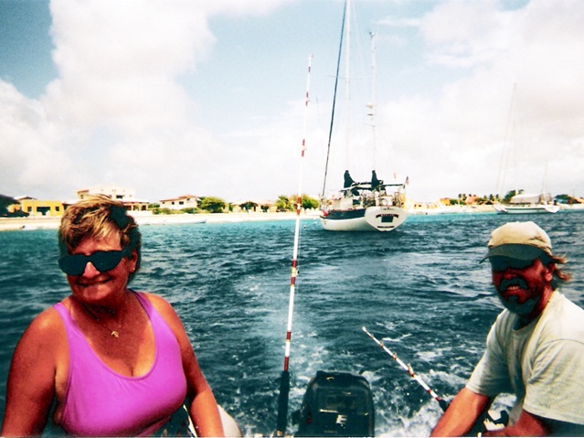 Bonaire_Claudia_DavidOur week of being plugged in is now over. We moved out to a mooring yesterday and it is GREAT to be back out in the open. The water here is extremely clear and we’re anxious to actually get in it soon. In 2 weeks our oldest son, Randy, and his soon-to-be-new-wife, Karen, will fly down to Bonaire for a visit and their honeymoon. This will be very special … it’s not every bride that gets to honeymoon with her new in-laws! We’re really looking forward to meeting her!